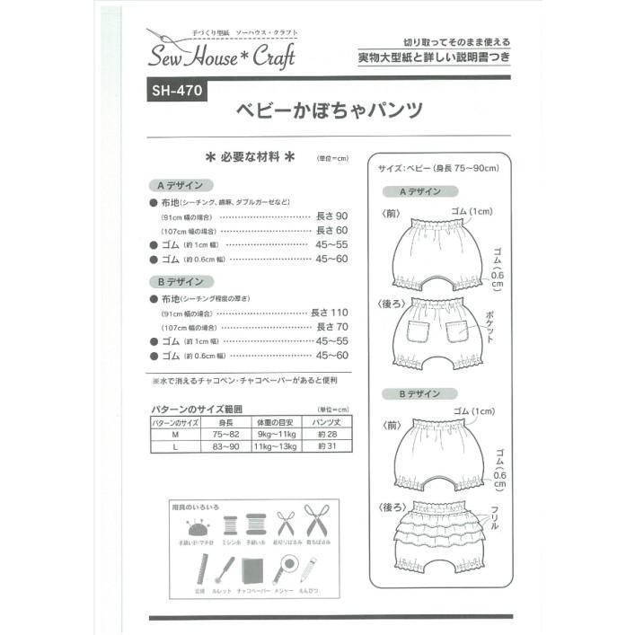 型紙 パターン ベビーかぼちゃパンツ ベビー 身長75 90cm No Sh 470