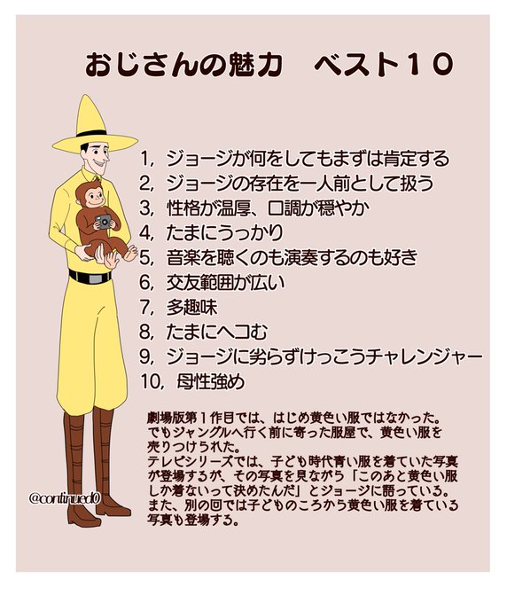 おさるのジョージ 黄色い帽子のおじさんの魅力をプレゼンしてみた ファンが続々集まって盛り上がる 謎のハイスペック