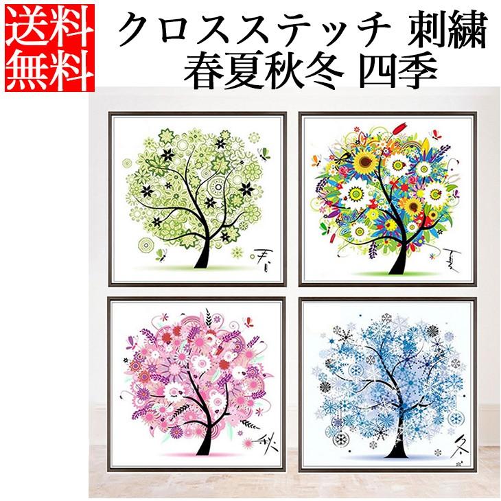 クロスステッチ 刺繍 キット 春夏秋冬 四季 図柄印刷 樹 木 花 植物