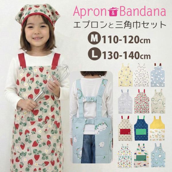 キッズ エプロン 三角巾セット 110cm 120cm 女の子 男の子 子供 子供