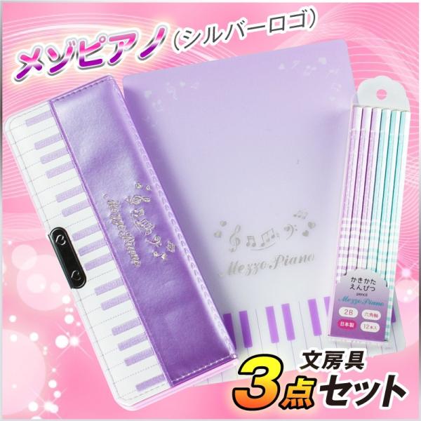 メゾピアノ 文具セット 3点 パープル 2ドア筆箱 入学準備 文房具