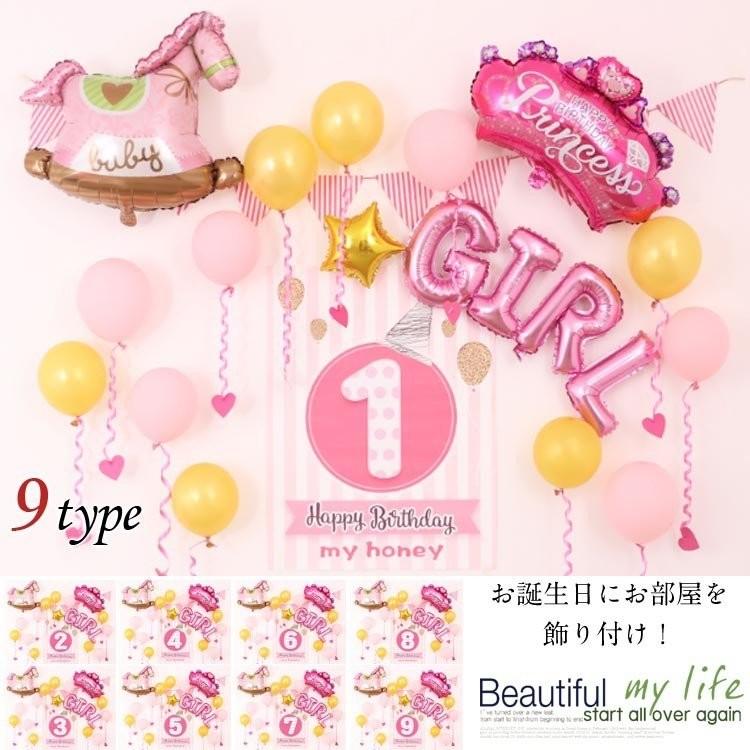 バースデー ガーランド バルーン 風船 誕生日 飾り付け セット 女の子